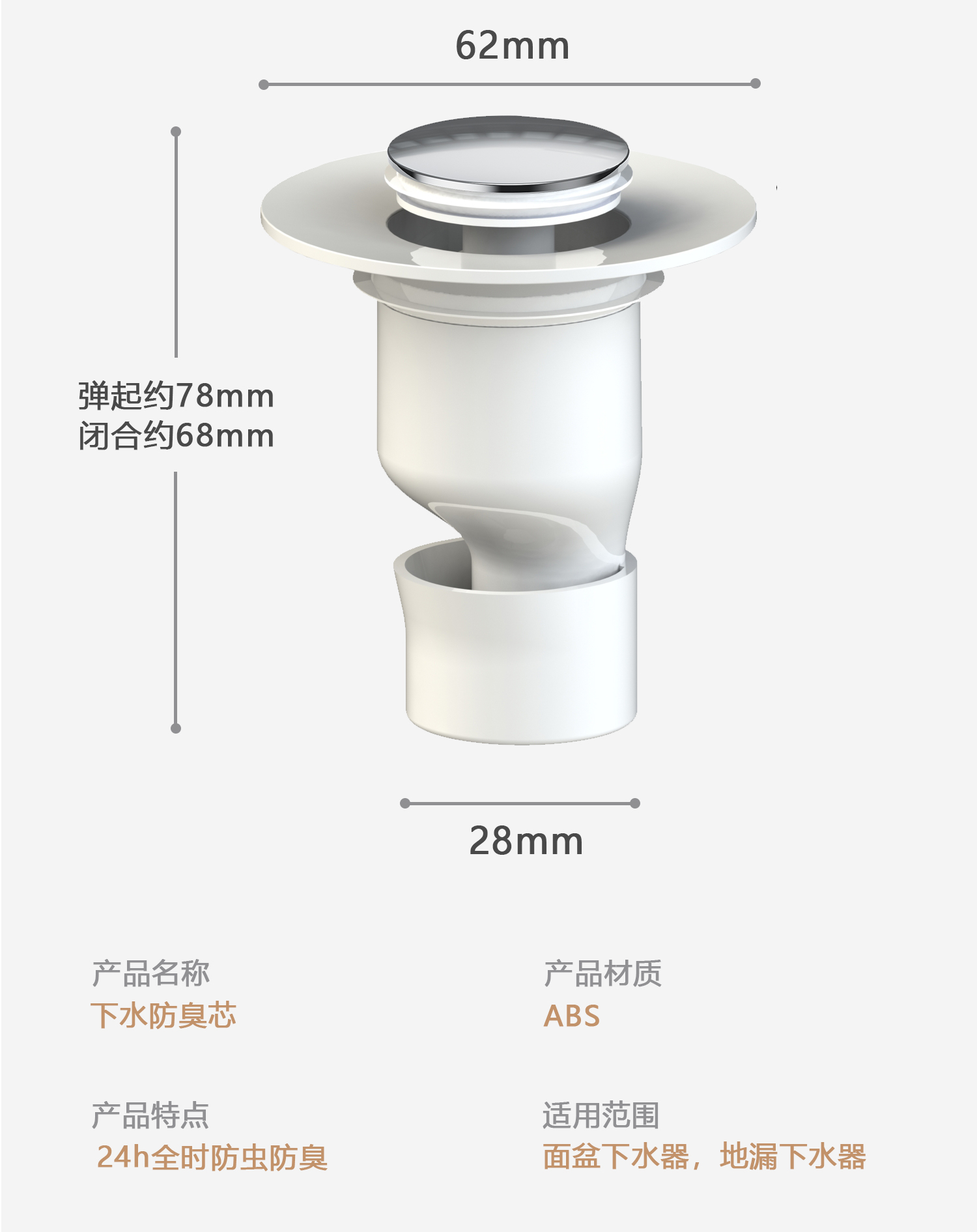 小白胖台盆防臭芯