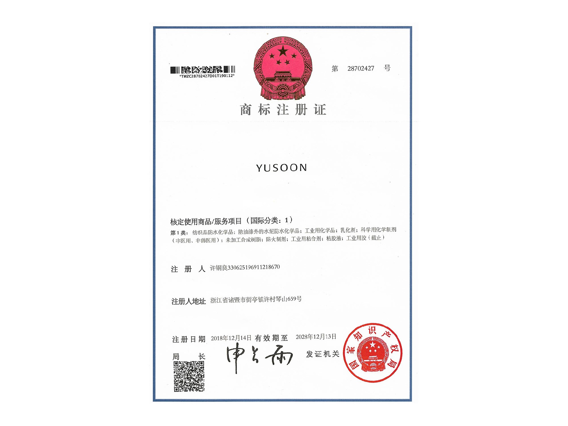 商标证书