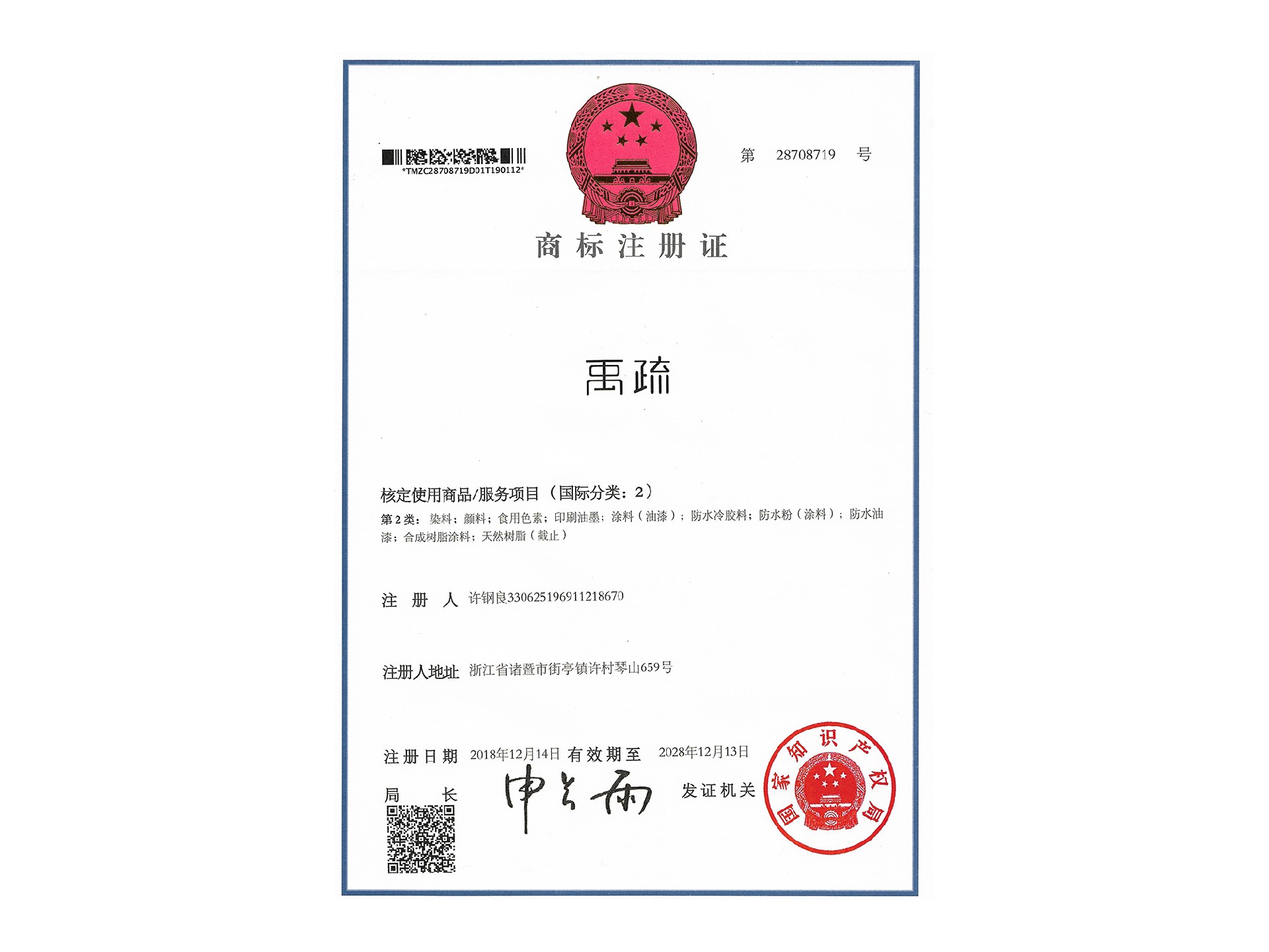 商标证书
